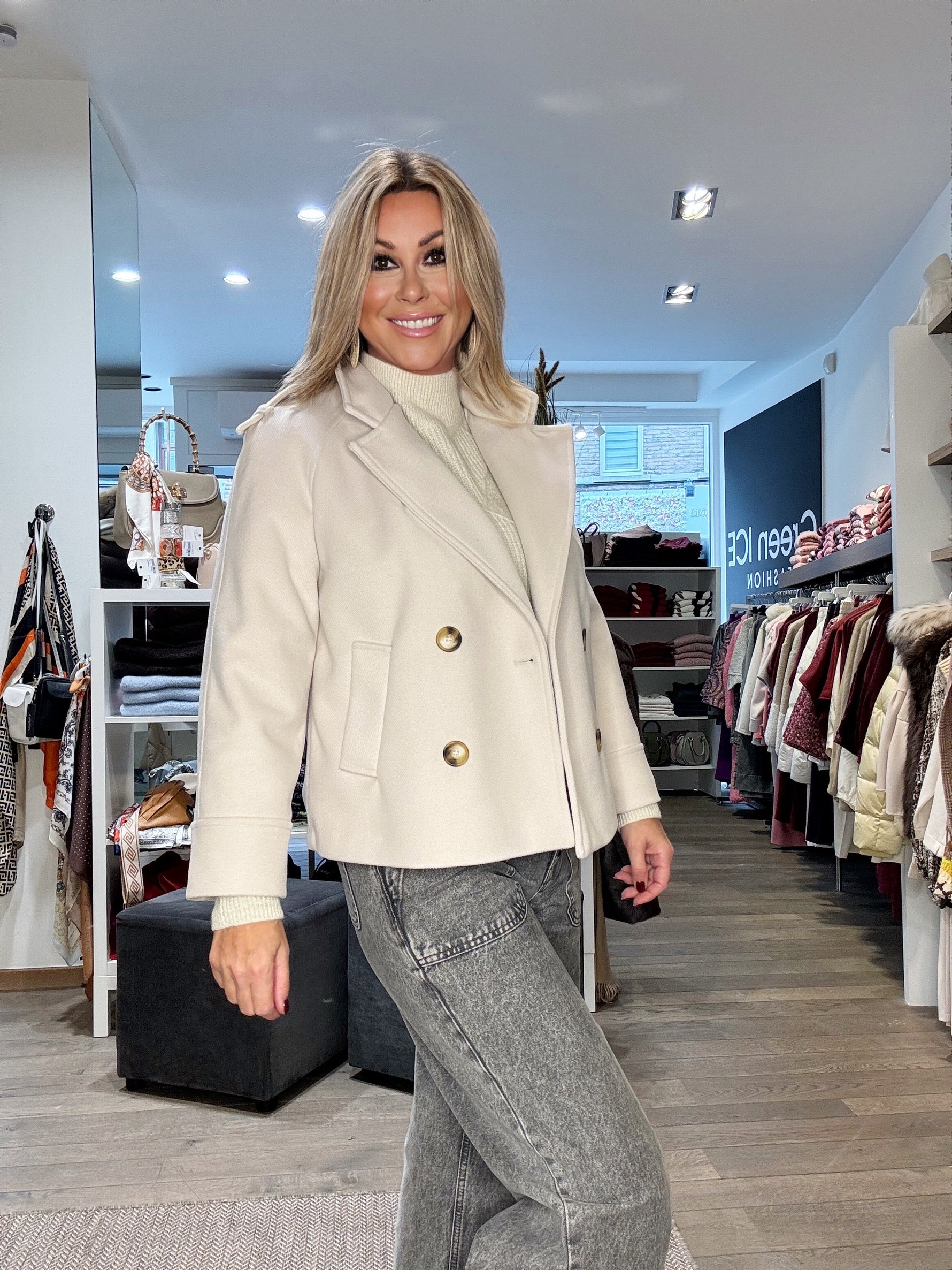 Stijlvol kort jasje met opvallende revers en dubbele knoopsluiting voor een elegante en moderne look