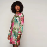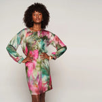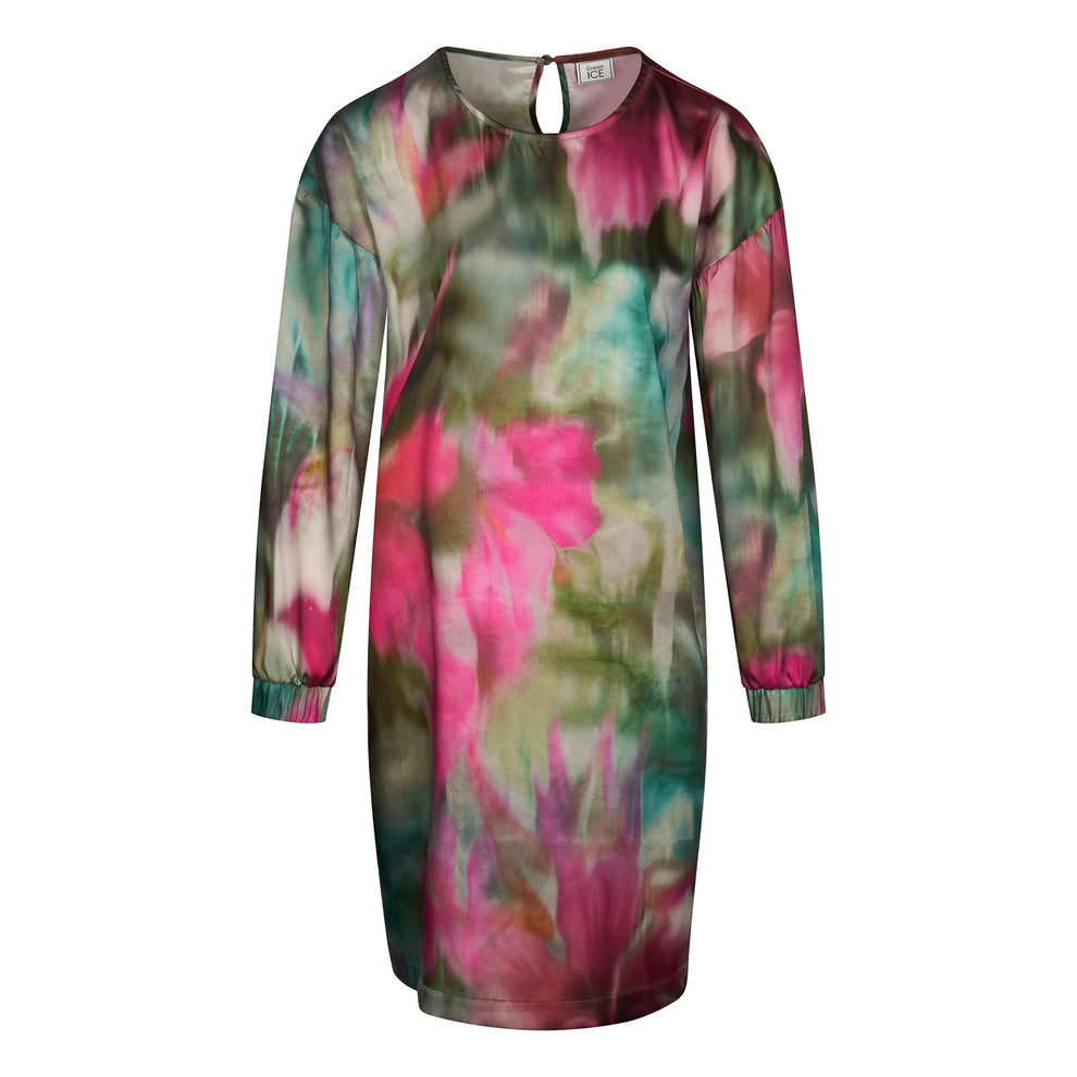Een jurk met een totale lengte van 100cm en voorzien van een patroon print