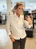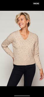 Fijngebreide trui (12-gauge) met V-hals en afgewerkt met stijlvolle stras
