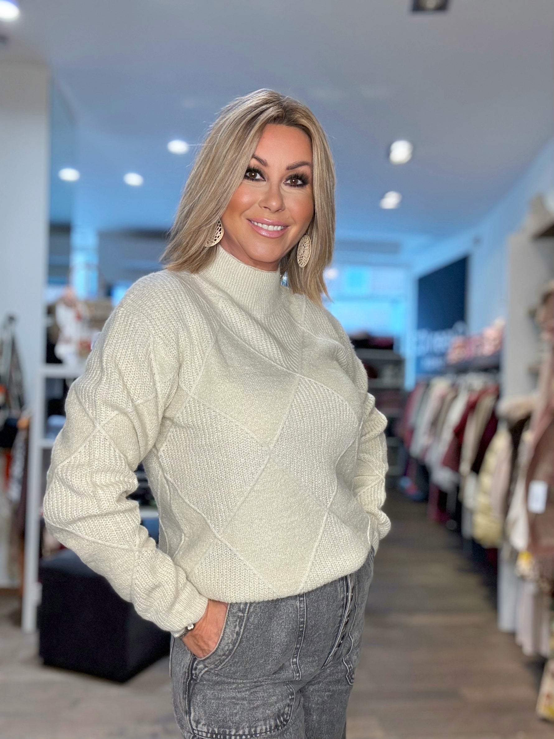 Grofgebreide trui (7-gauge) met opstaande kraag en subtiele lurexdetails voor een glinsterende en modieuze touch